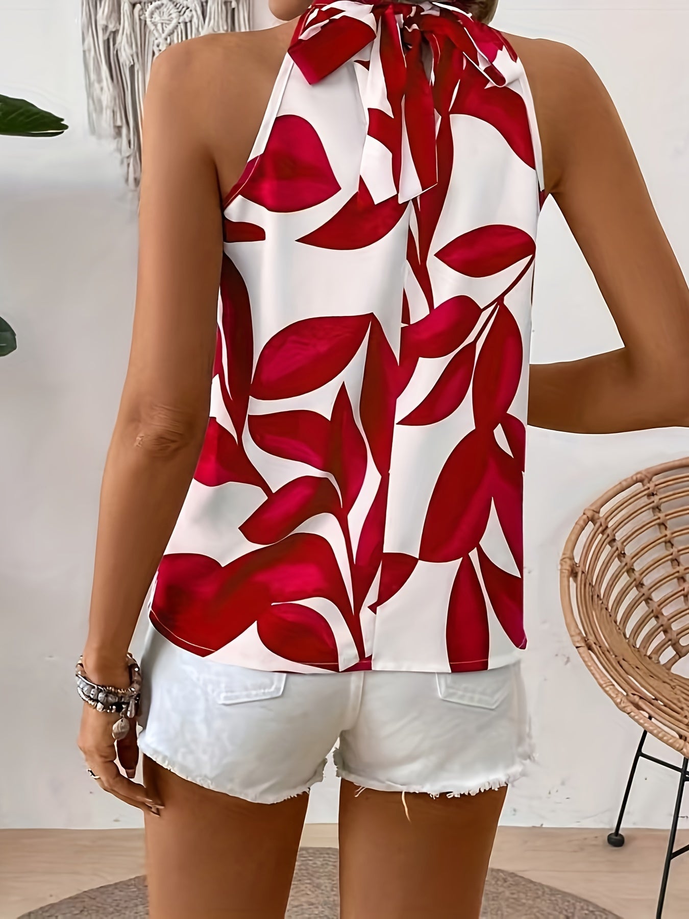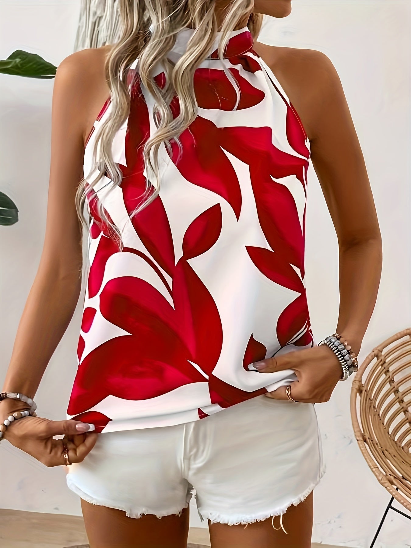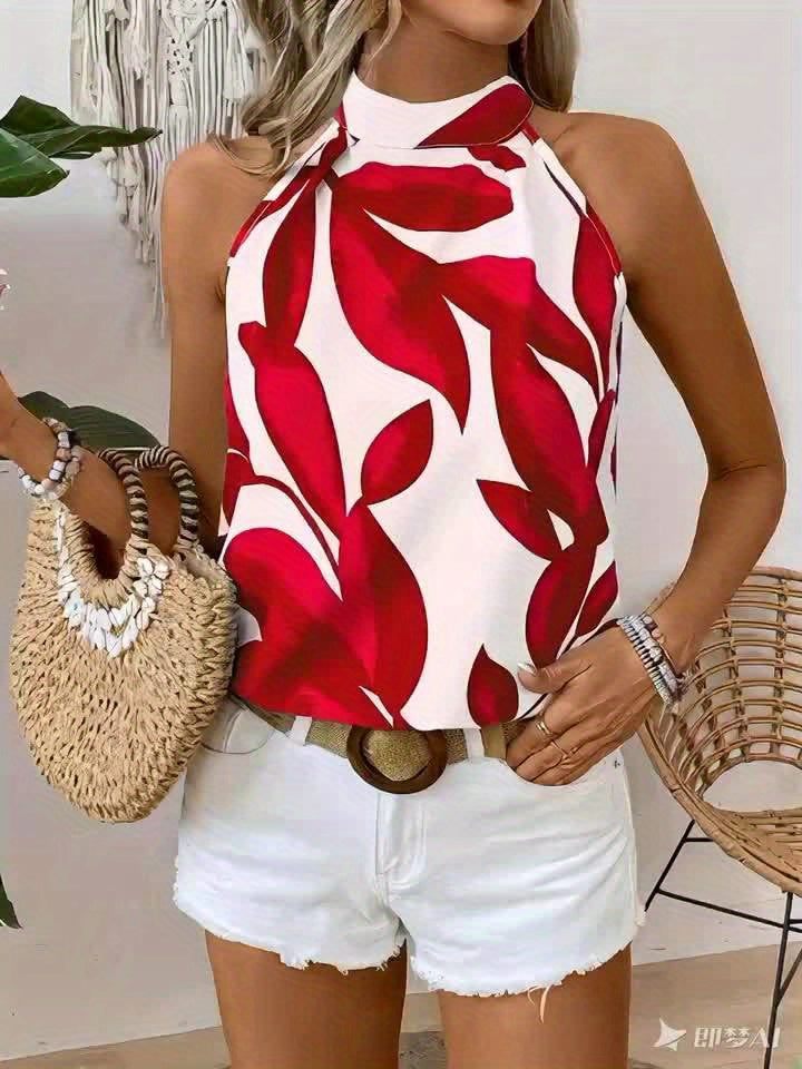 Bring the fire. The Ruby Palm Halter makes a bold entrance with its striking crimson leaf print set against crisp white. Designed with a flattering high-neck halter cut, it’s the perfect mix of tropical flair and effortless chic — ready for sunlit brunches, seaside escapes, or nights that don’t end early.