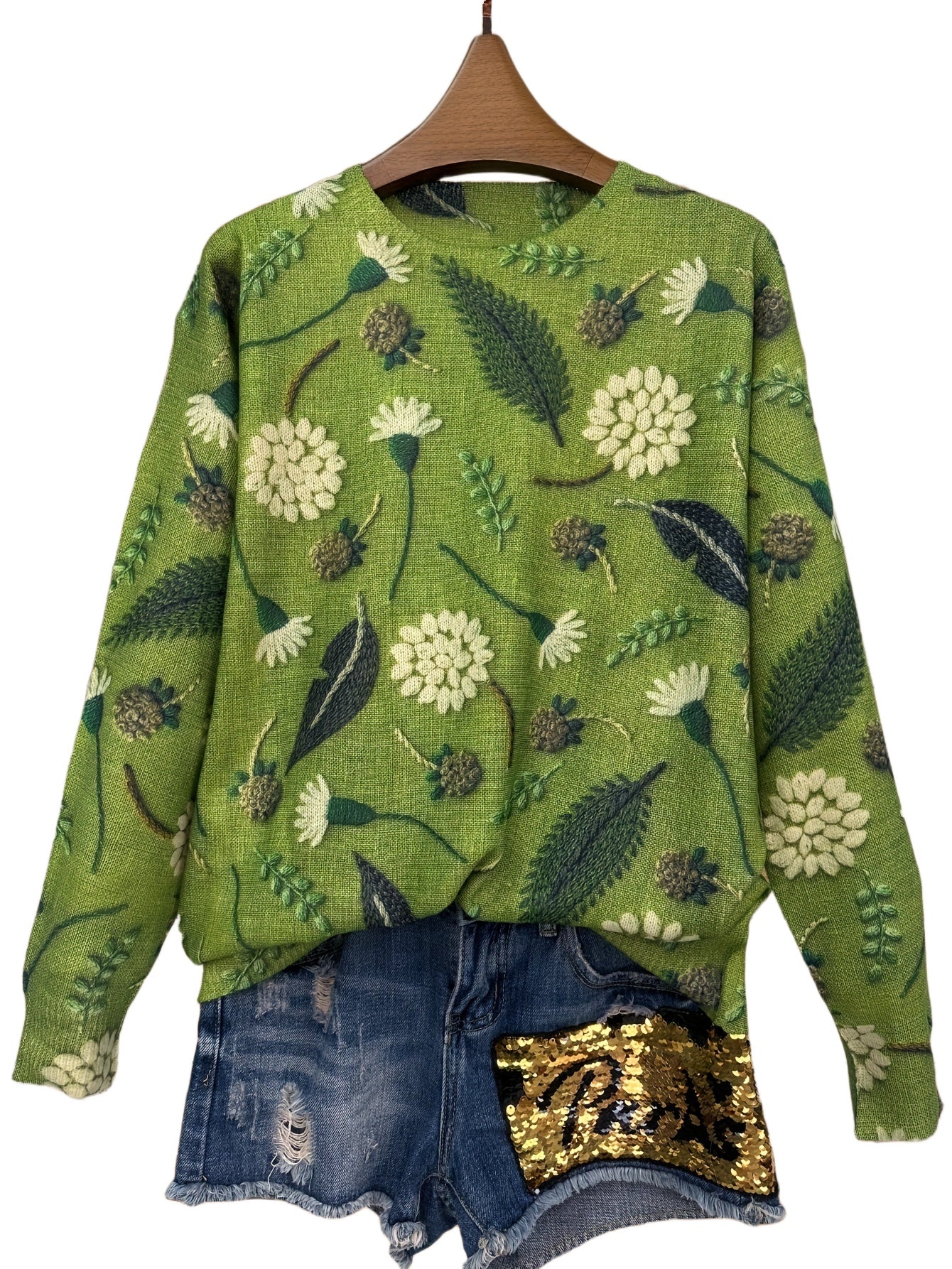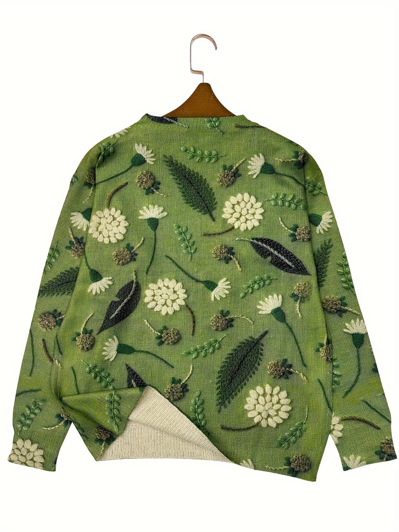 Breathe in nature with the Lumachic Herb Garden Sweater. Featuring embroidered-style florals, leaves, and seed pods on a fresh green backdrop, this cozy knit captures the spirit of wild meadows and botanical charm. Soft, breathable, and effortlessly elegant.
