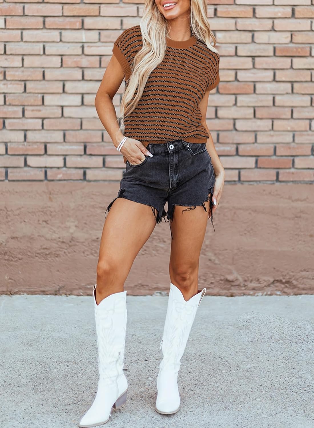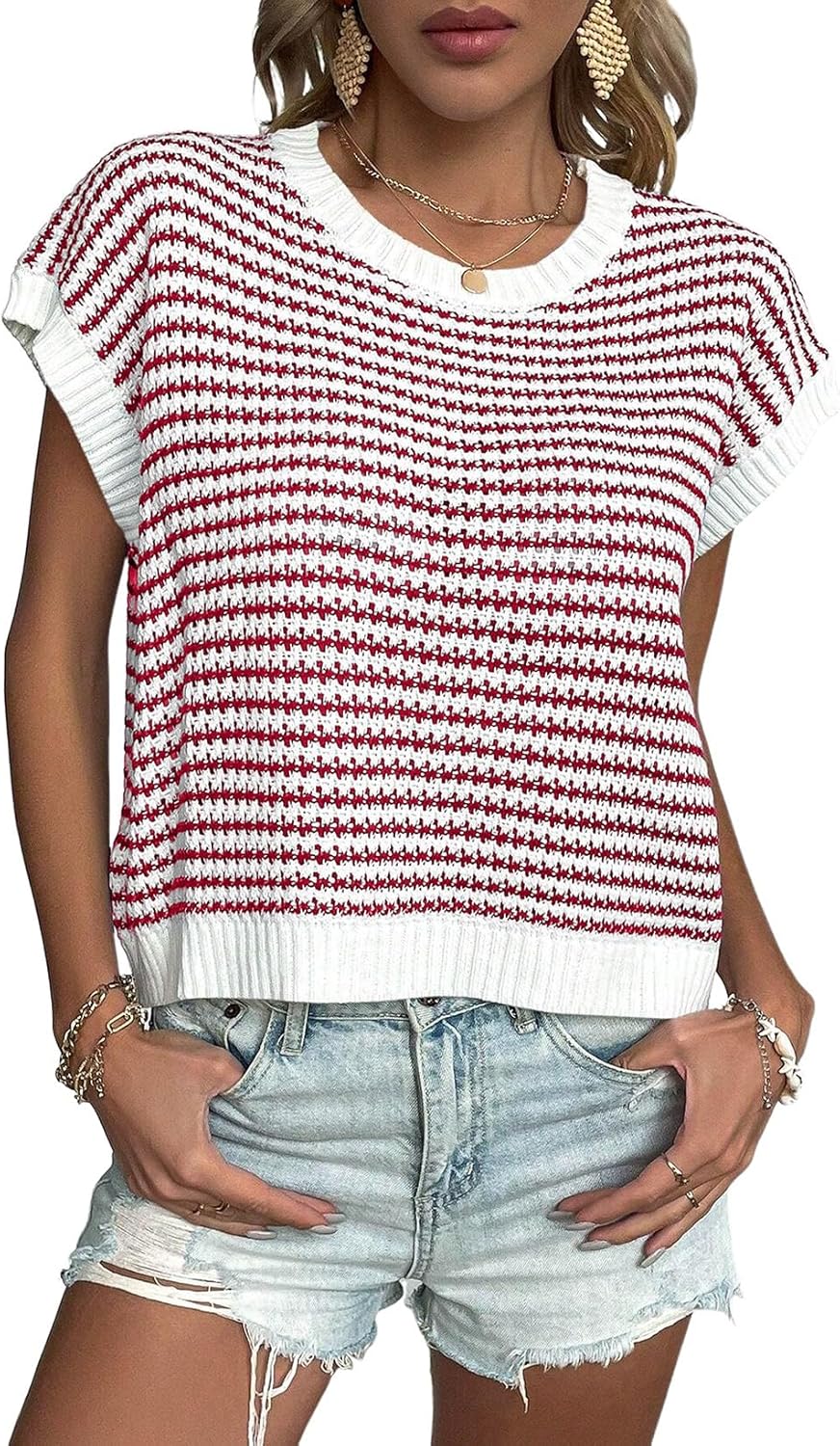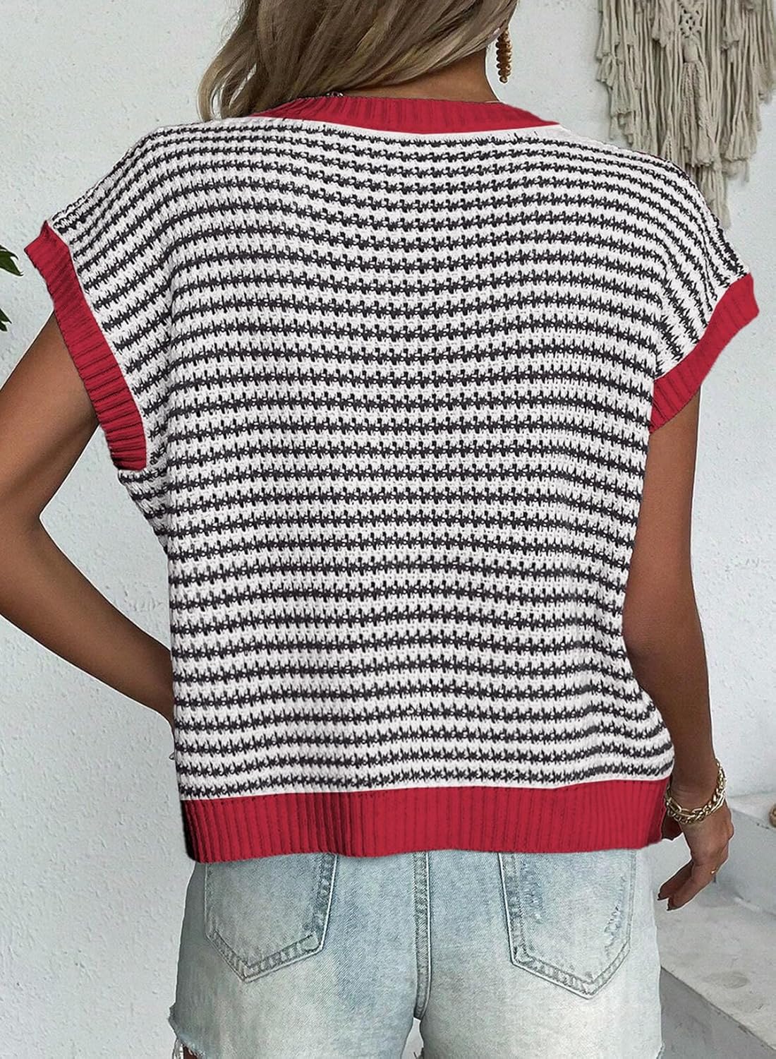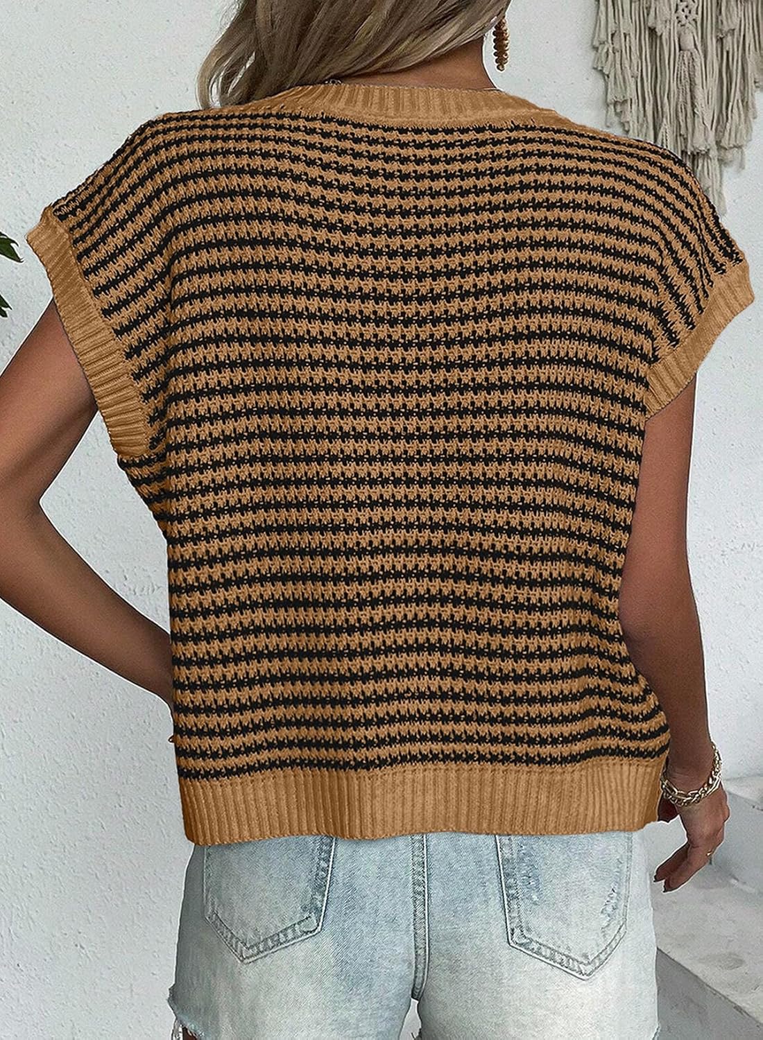 A breezy sweater tank with textured stripes and ribbed trim. The cap sleeves and relaxed, boxy fit make it an easy throw-on for warm days or layered looks.