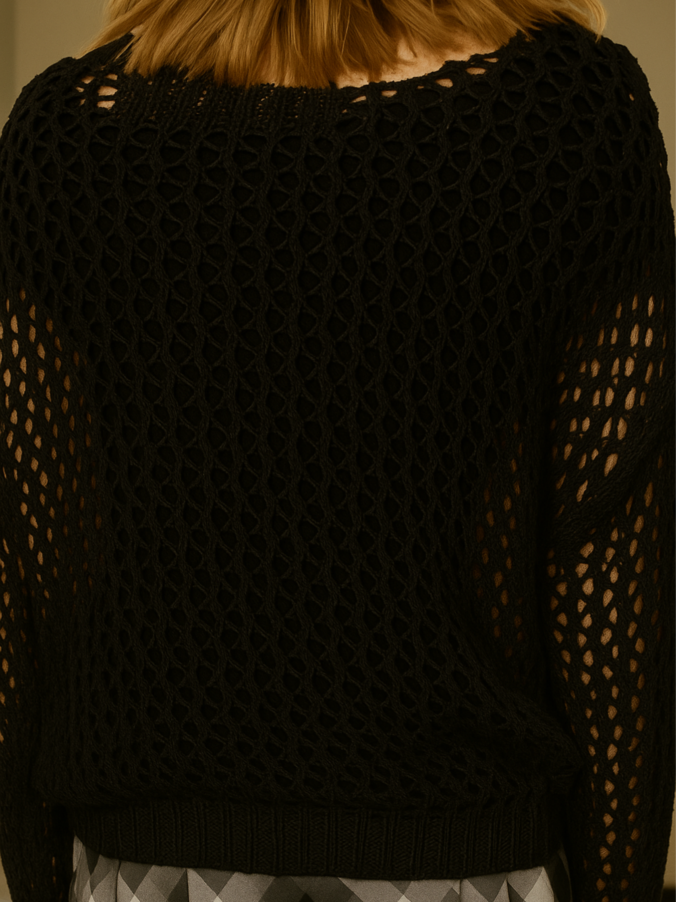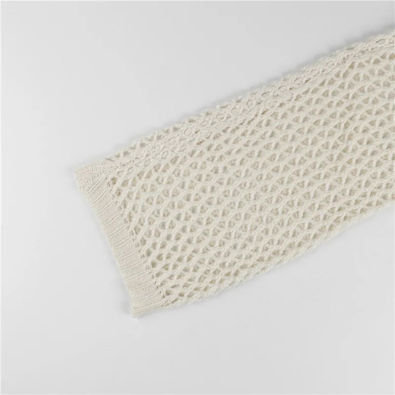 • Open-knit mesh with mixed-stitch cross motif