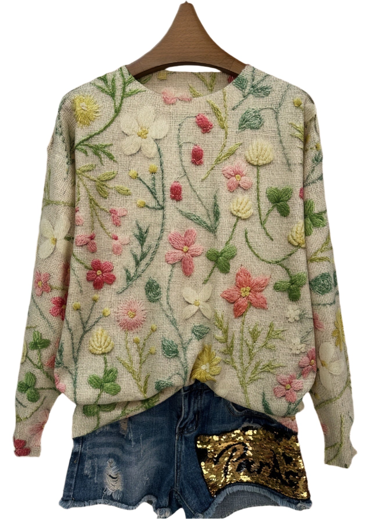 Step into a blooming dreamscape with the Lumachic Wildflower Garden Sweater. Crafted in a breathable knit, this sweater is adorned with lush, raised floral embroidery in soft pastel tones. The all-over botanical pattern adds vintage charm, while the relaxed fit makes it perfect for layering in any season.