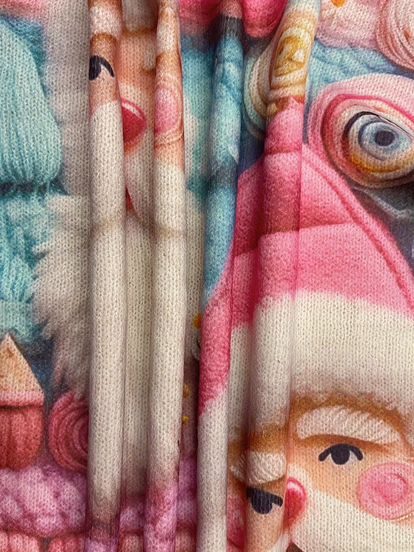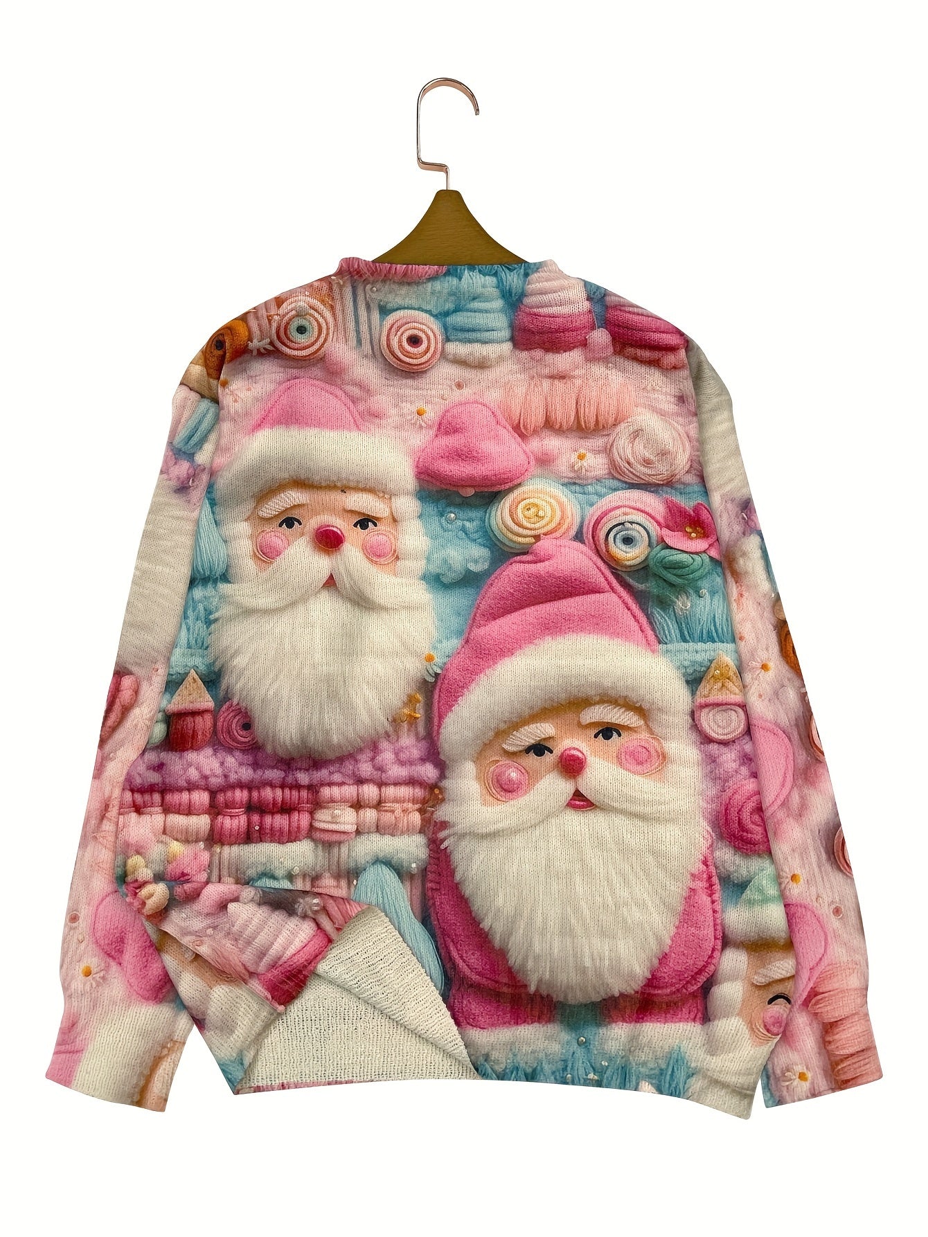 Step into a pastel winter wonderland with the Lumachic Candy Claus Sweater. Featuring plush pink Santas, swirly sweets, and soft textures, this holiday knit is a cozy treat that feels like Christmas magic. Sweet, bold, and irresistibly fun.