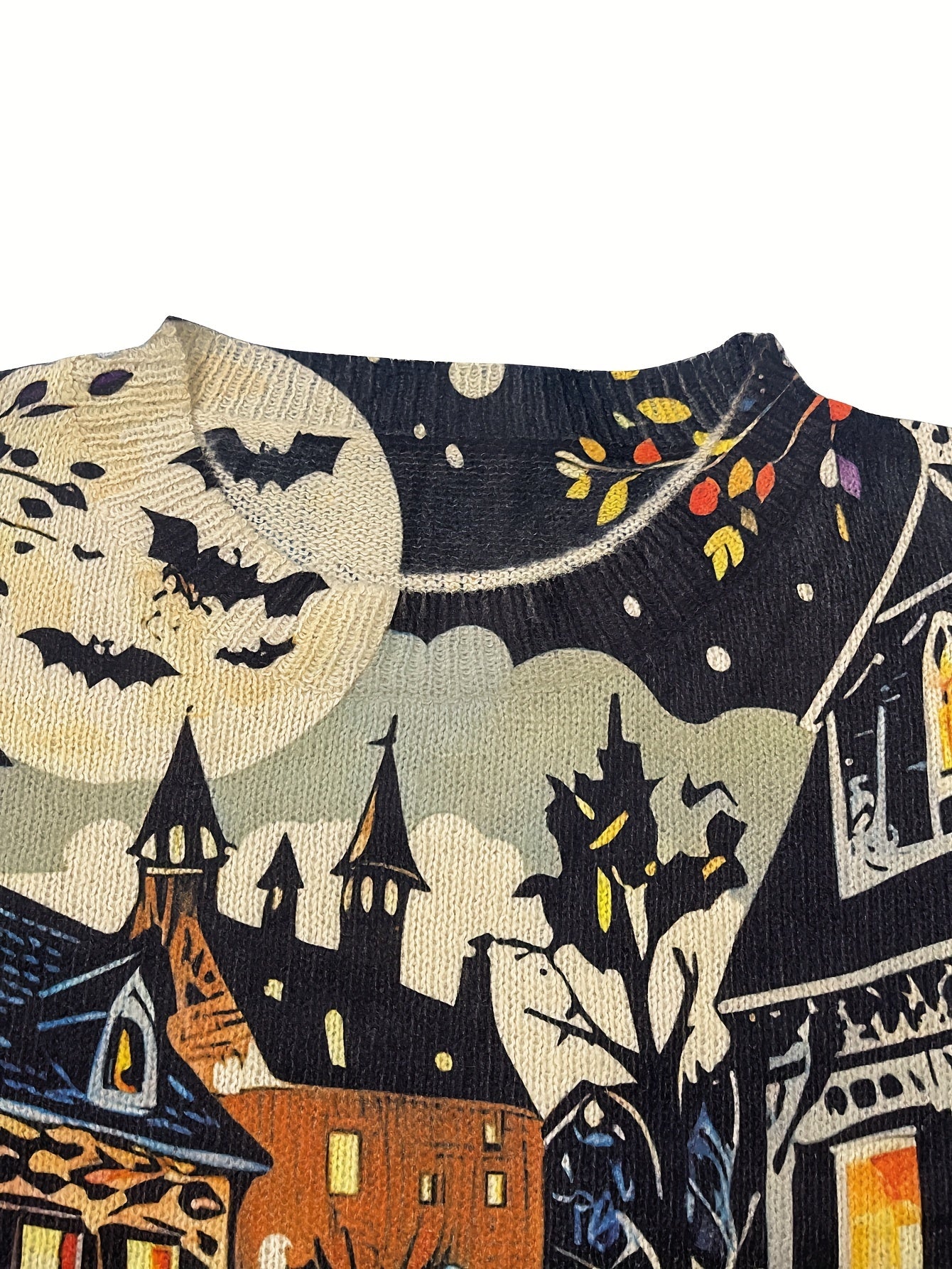 Step into the magic of Halloween night with the Lumachic Midnight Mischief Sweater. Featuring a detailed moonlit village, glowing jack-o’-lanterns, and a curious black cat, this cozy knit is a wearable tale of spooky charm and mystery. Bold, soft, and totally enchanting.